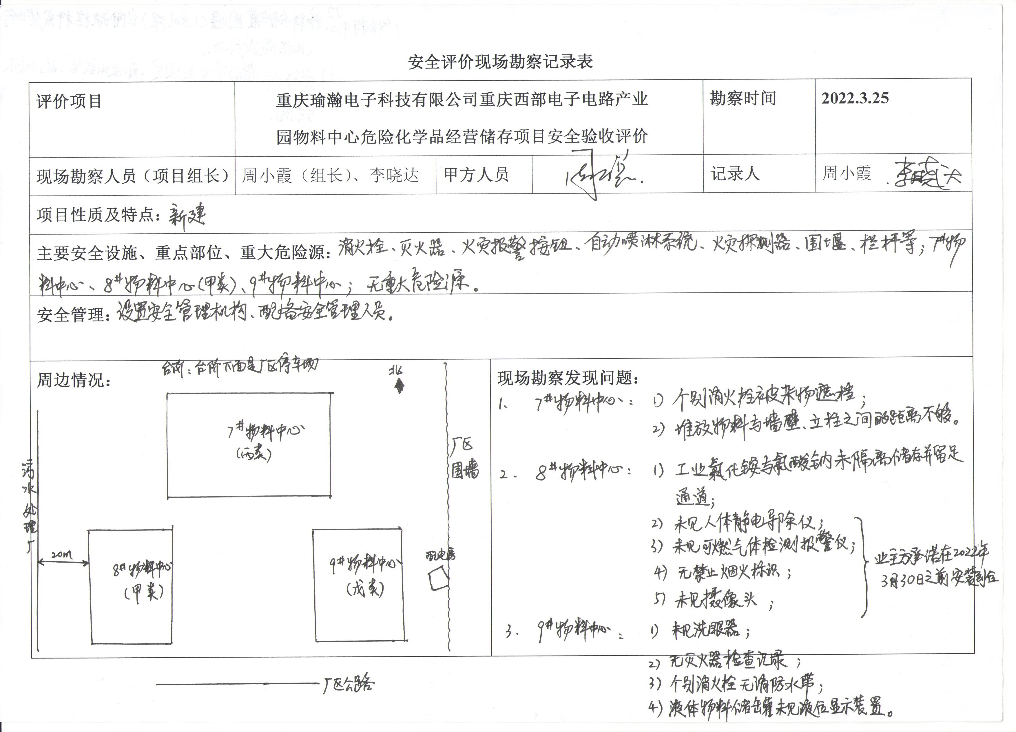 項目名稱 | 重慶瑜瀚電子科技有限公司物料中心危險化學(xué)品經(jīng)營儲存項目 安全驗收評價 | 合同編號 | DA-(渝)JP-2022001 | |||||