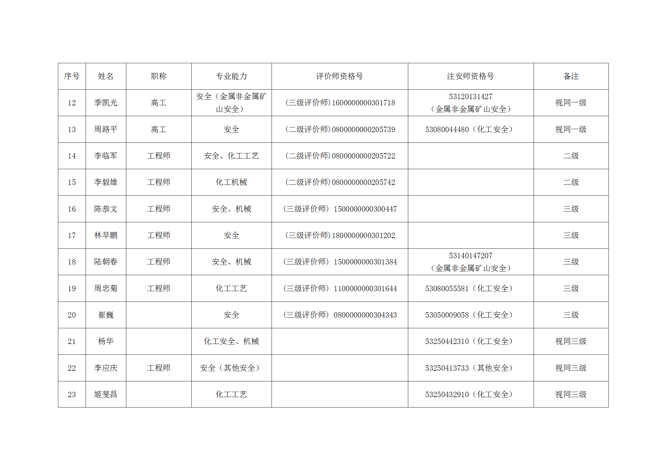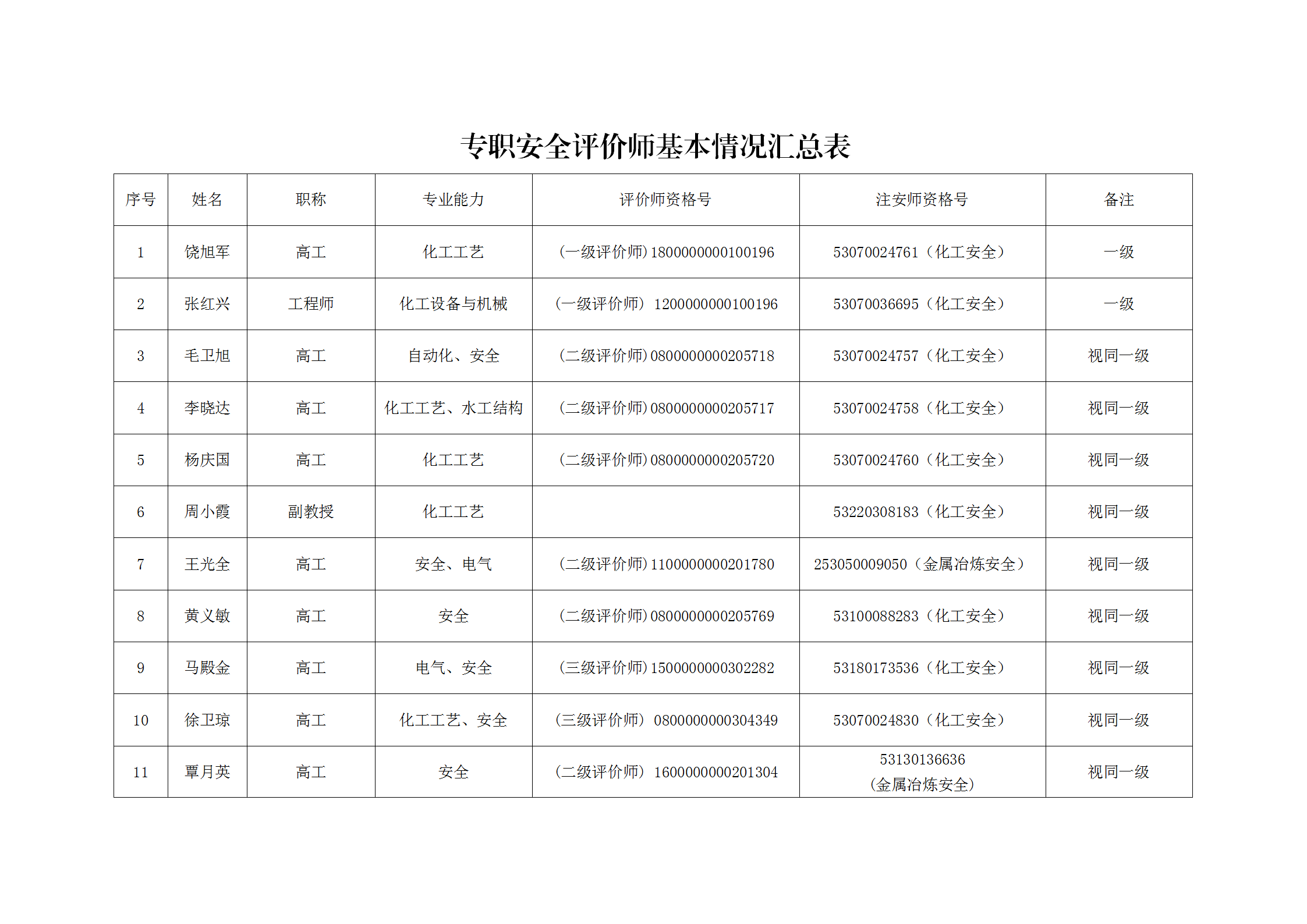 昭通市鼎安科技有限公司安全評(píng)價(jià)師一覽表