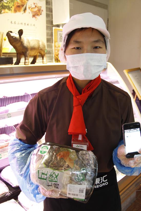▲專營店工作人員展示通過二維碼了解產品各個環節相關信息