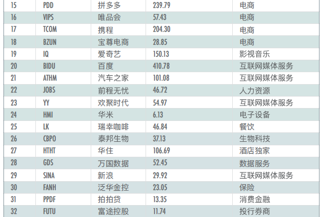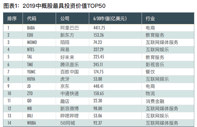 2019中概股最具投資價(jià)值TOP50